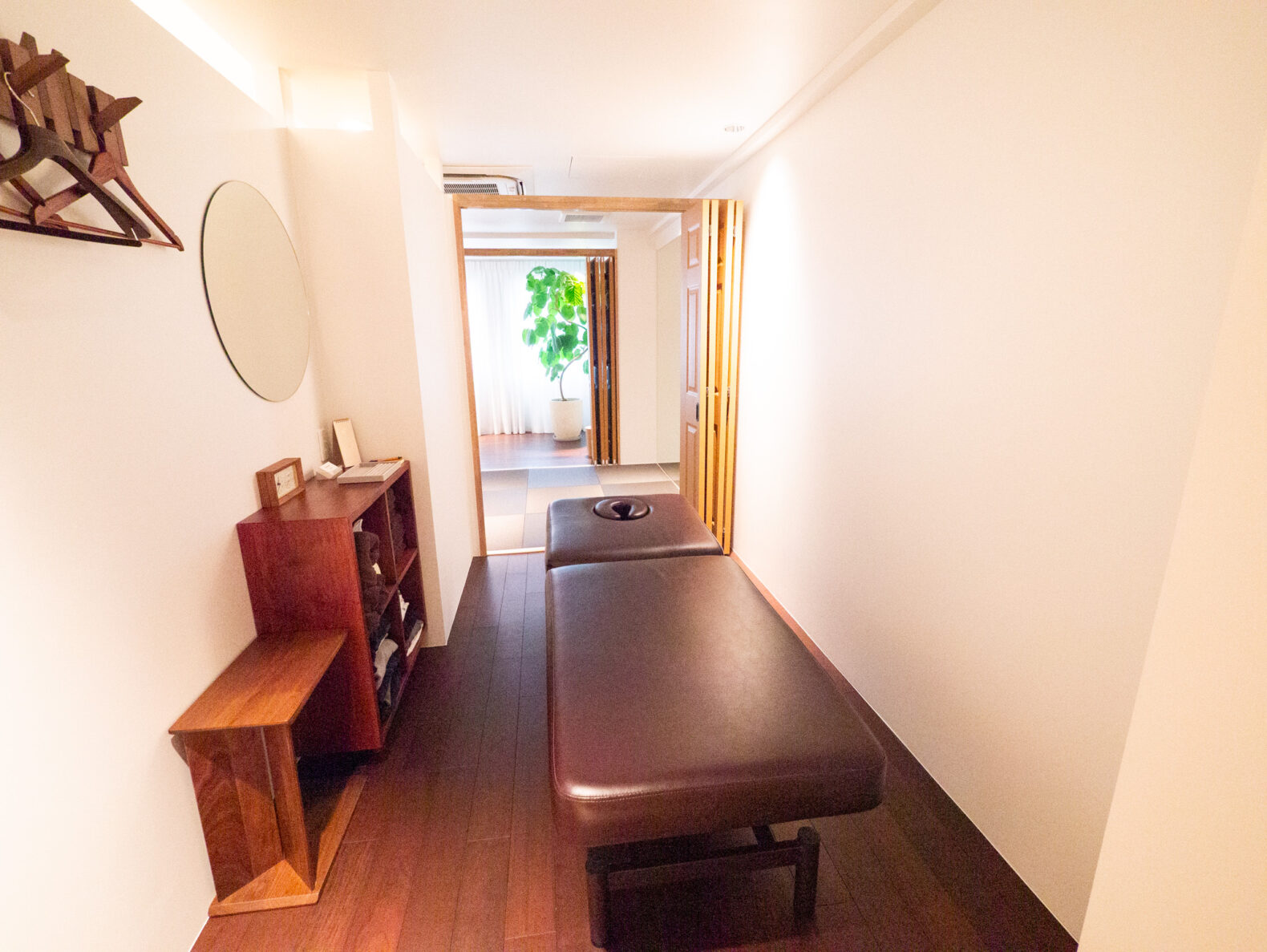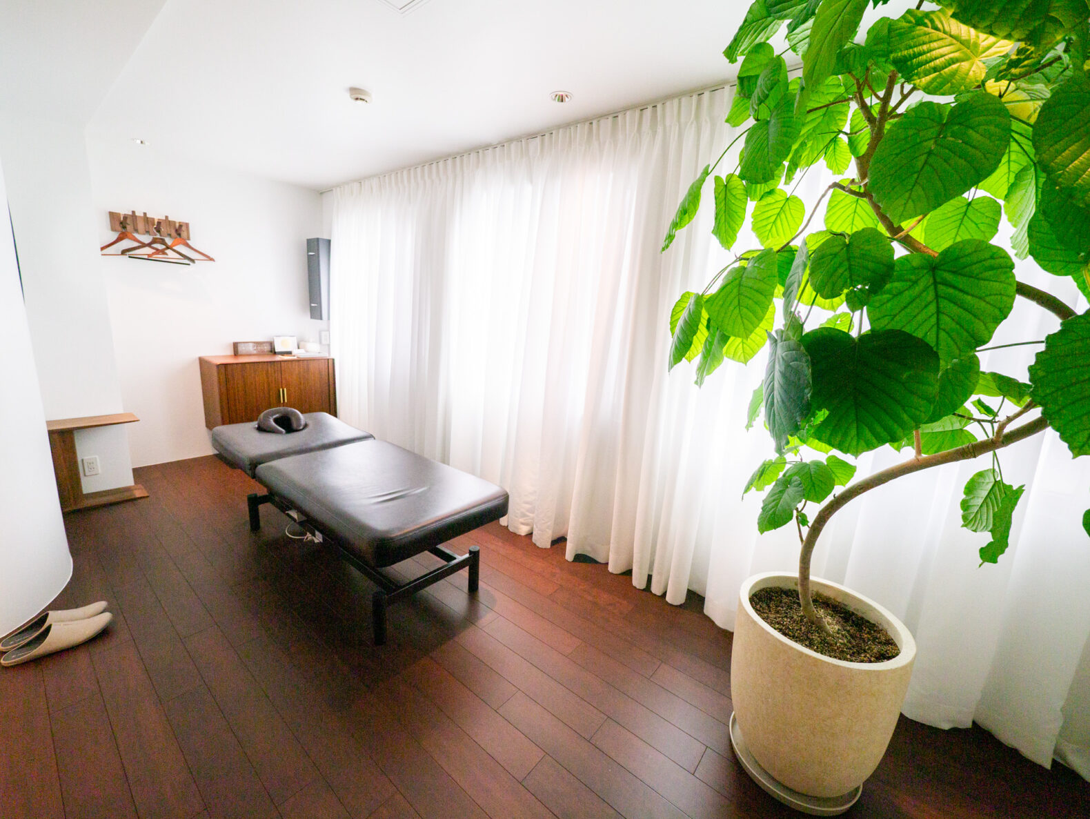 アクロバティックな施術に合わせた各個室は、開放感とくつろぎを感じる空間に。